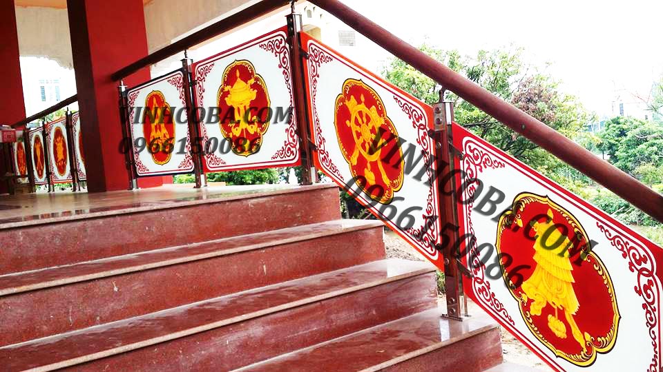 Tranh kính Phật giáo : Bộ lan Can Bát Cát Tường. Vinhcoba bảo hành điêu khắc vĩnh cửu.