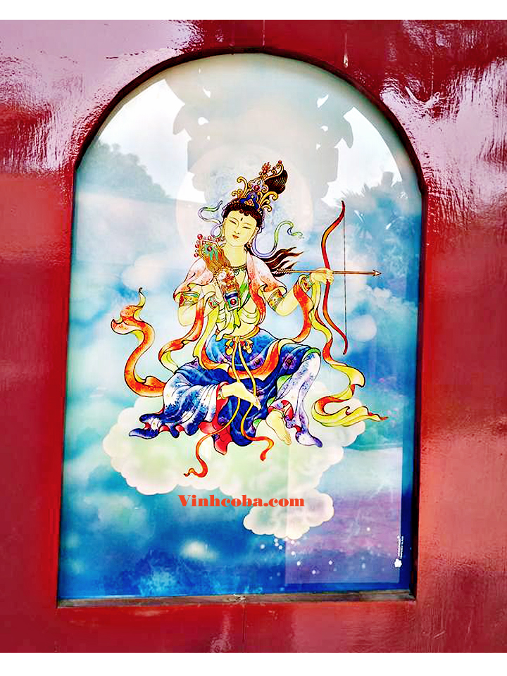 15) A Thệ Dựng: Quán Âm hiện tướng Phi Đằng Dạ Xoa Thiên Vương tuần sát bốn phương khuyến thiện ngừng ác.