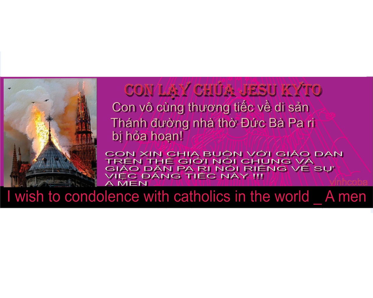Thánh đường Nhà Thờ Đức Bà PaRi bị hỏa hoạn, chúng con xin chia buồn cùng giáo dân trên toàn thế giới nói chung, và giáo dân PaRi nói riêng về sự việc đáng tiếc này!