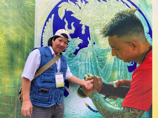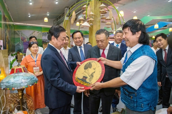Tại gian hàng, Phó Chủ tịch Quốc hội Lê Minh Hoan đã dành thời gian trò chuyện, chia sẻ và khích lệ. Nghệ nhân Vinhcoba đã trân trọng kính tặng đồng chí tấm chân dung Chủ tịch Hồ Chí Minh điêu khắc trên kính, với dòng chữ khắc sâu “Không có gì quý hơn độc lập, tự do”. Hành động này không chỉ là một món quà nghệ thuật, mà còn mang ý nghĩa tri ân, khẳng định tinh thần đồng hành của giới nghệ nhân trong công cuộc xây dựng nông thôn mới.