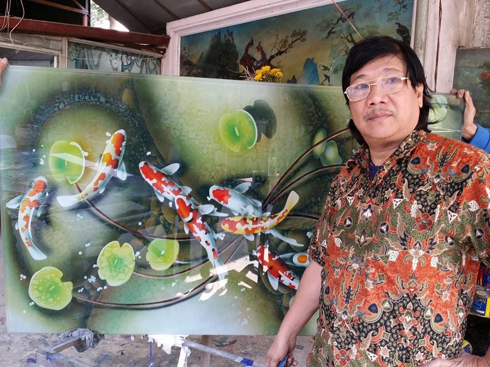 Mr. Pham Hong Vinh considers as Vietnam master of glass painting which is began with the simple sketches. The sketching is scanned into the computer design system where Mr. Vinh was outlined his drawing to cater for carving on the glass then. With 24 years in the trade now, Mr. Vinh is the first person making glass painting in Vietnam. He said that technologies have made his job much easier. A specialized laser print will draw the outlines onto a sheet of sticky back plastic and this in turn will be pasted onto the glass to create the base for carving to begin.