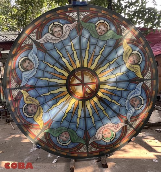 Cửa sổ hoa hồng Coba artglass phong cách Stainedglass (Church window, stained glass, glass window, stained glass window - Vinhcoba Virgin Mary Rose round window art glass)