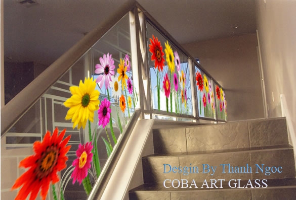 Lan can cầu thang kính nghệ thuật