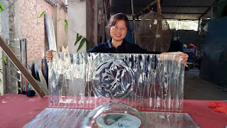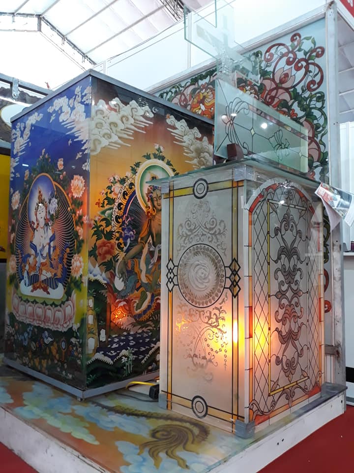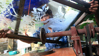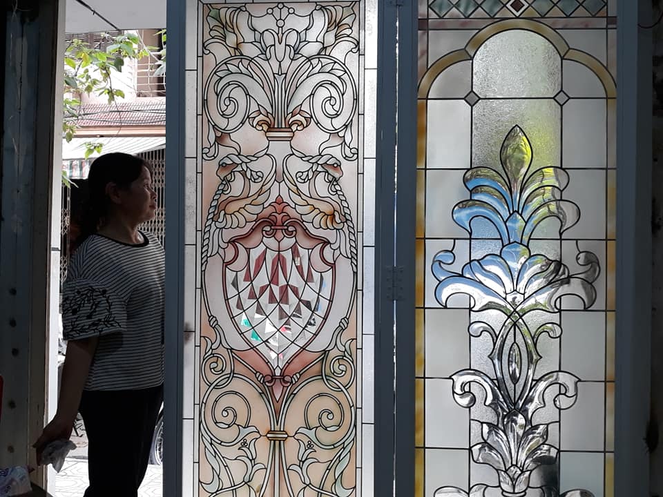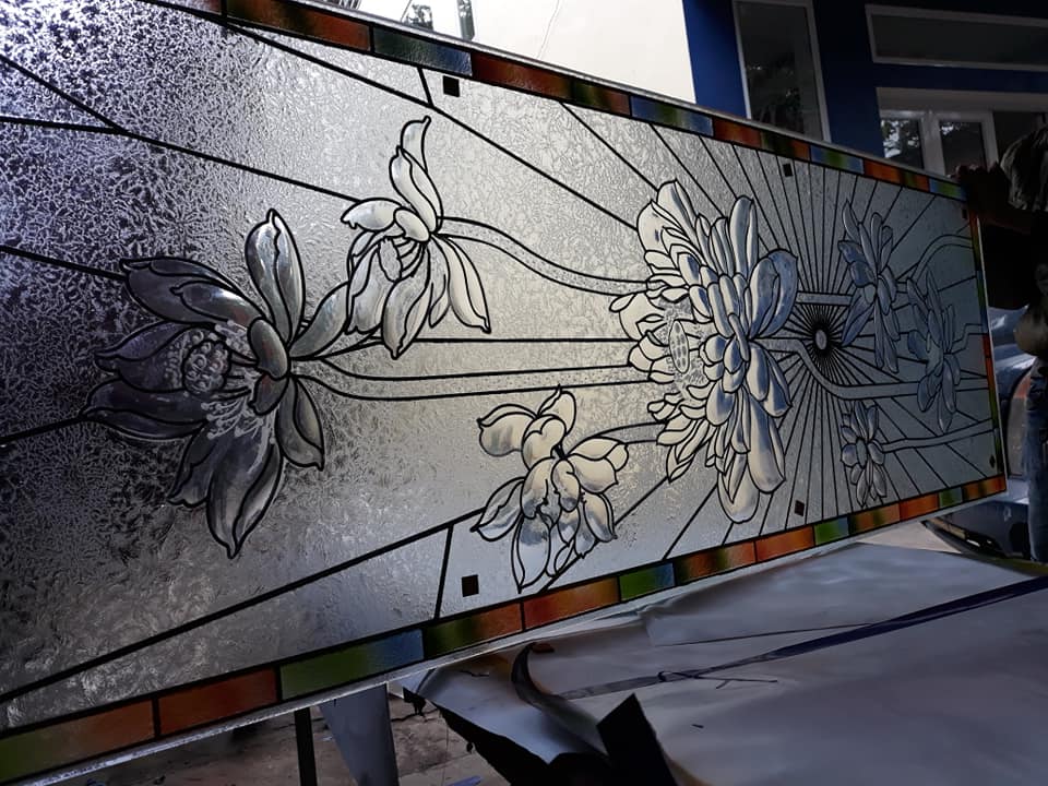 Những tranh kính khổ nhỏ , gương tủ và kính tủ ly được điêu khắc những hoa văn đầu tiên
