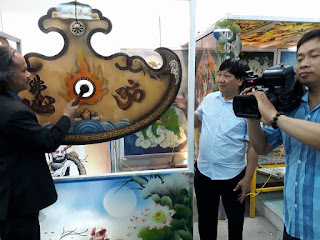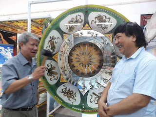 Ông Nguyễn Văn Bình Tổng thư ký hiệp hội làng nghề Việt nam gõ thử Cồng kính vinhcoba