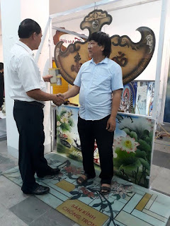 Ông Hiệu trưởng đại học Mỹ Thuật Công Nghiệp GS PtS Nguyễn Xuân Nghị đã rất tâm đắc về độ bề , đẹp và nhiều giá trị sử dụng của Tranh kính vinhcoba