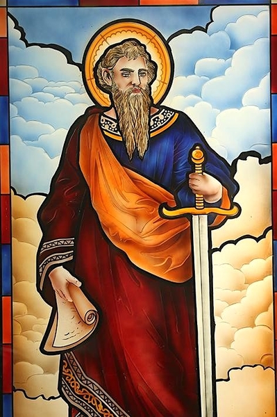 Tranh kính Thánh Phê rô (cầm chìa khoá và thánh Phao Lô (cầm kiếm) do ông chế tác