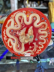 Đĩa kính decor hoa văn rồng nhà Lý đón năm Giáp Thìn 2024