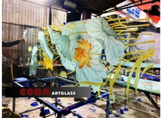 Vách kính khắc sen trên kính cường lực Coba Artglass