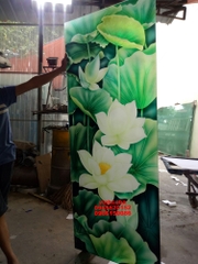 Tranh Sen Trắng Điêu Khắc. 727 lh 0985620152- 0966150086 để được tư vấn miễn phí Vinhcoba sáng tạo ra #kính _hoa mài khắc trên kính tủ ly, tủ đứng, sáng tạo ra...
